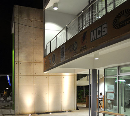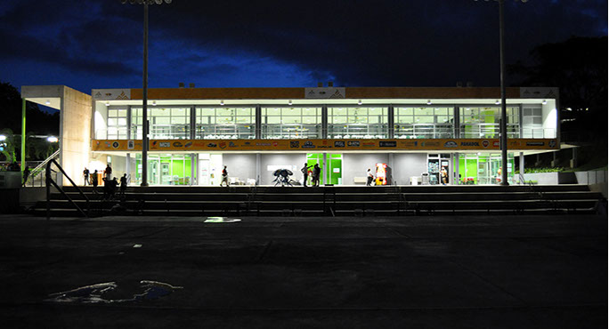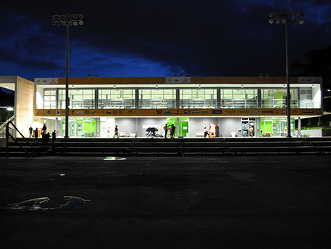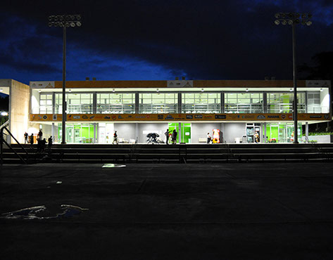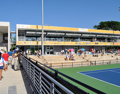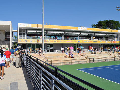 The Tennis Complex, designed in collaboration with Global Sports & Tennis Design Group, comprises a total of eight courts, being the only Davis-Cup compliant facility on-island. Site design addressed program needs and topography, blending a Multi-use, environment-friendly support building designed with cross-ventilation and hangar doors for UPR use after the Games.
